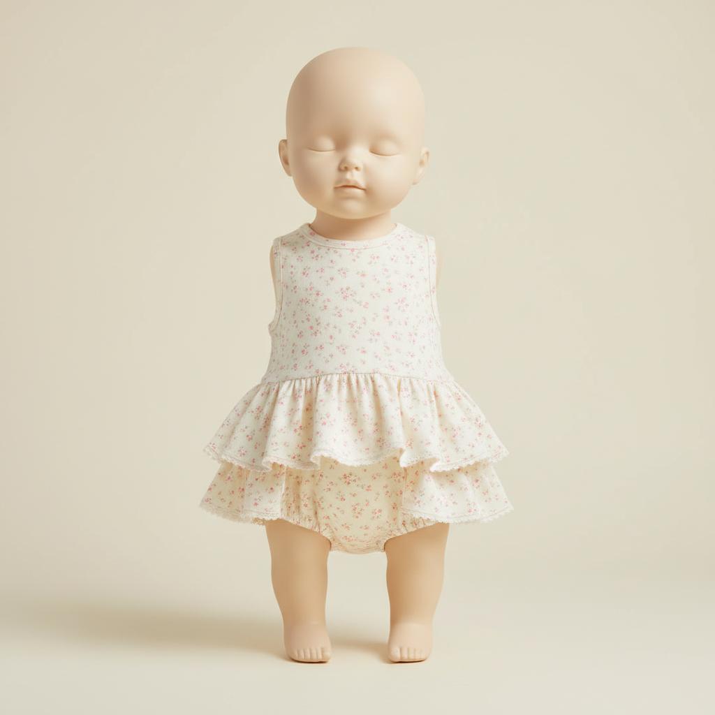 Comfortable romper with tiny flowers and ruffled bottom. Designed for ease of movement and maximum comfort, this cute romper is perfect for everyday wear and playtime.